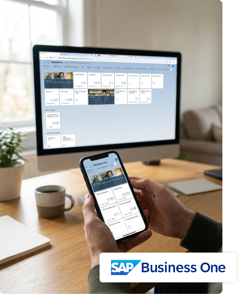 Ready to transform your business operations with SAP Business One? Our team of certified specialists is here to help you streamline processes, improve efficiency, and drive growth. Let’s discuss how we can tailor a solution for your specific needs.